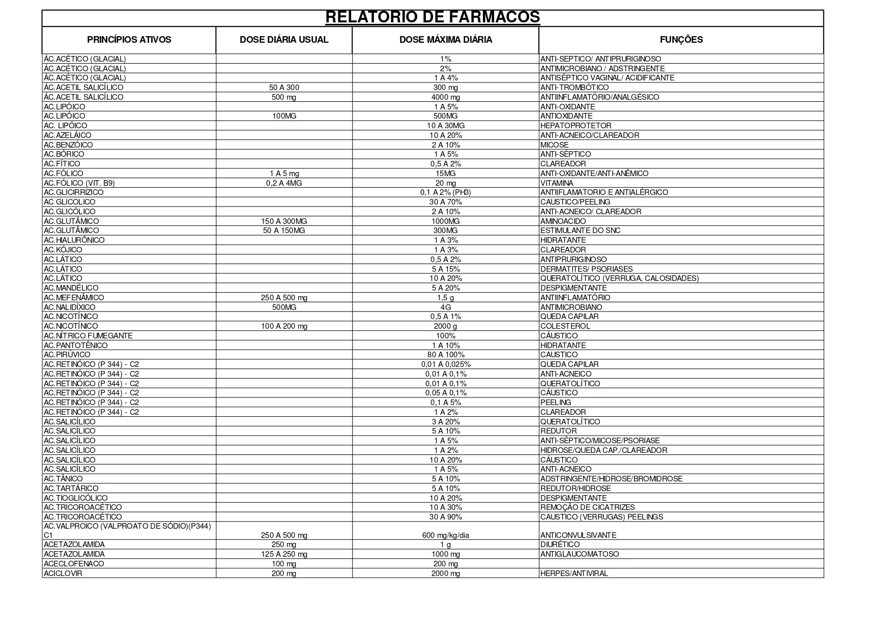 Um manual com mais de 950 fármacos com a dosagem máxima usual, dosagens máxima diária e o grupo farmacológico de cada fármaco.