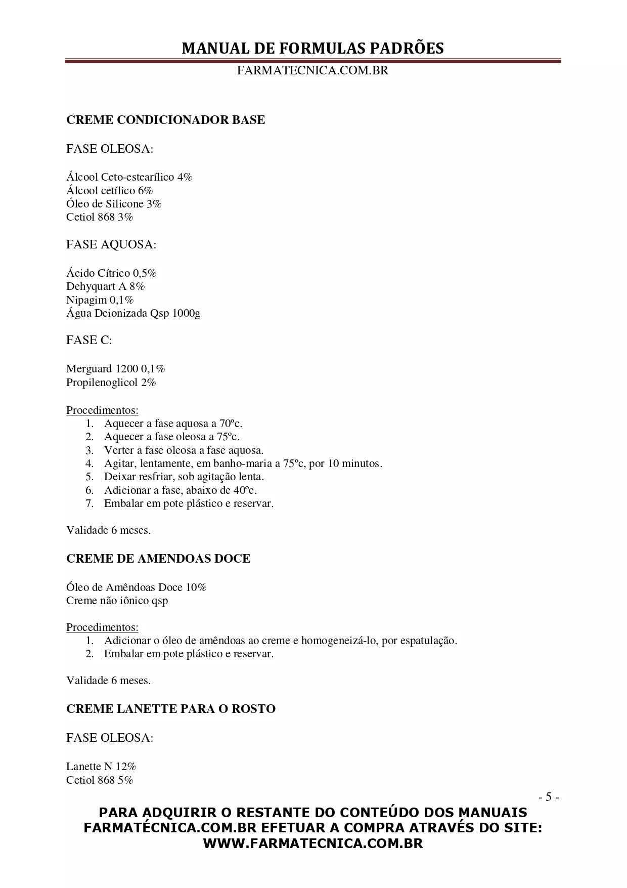 Se você busca mais eficiência e segurança em suas formulações, os Manuais FarmaTécnica são o material ideal. Com um acervo completo de fórmulas detalhadas, você terá acesso a informações precisas para otimizar sua produção, minimizar erros e garantir resultados consistentes para seus clientes.