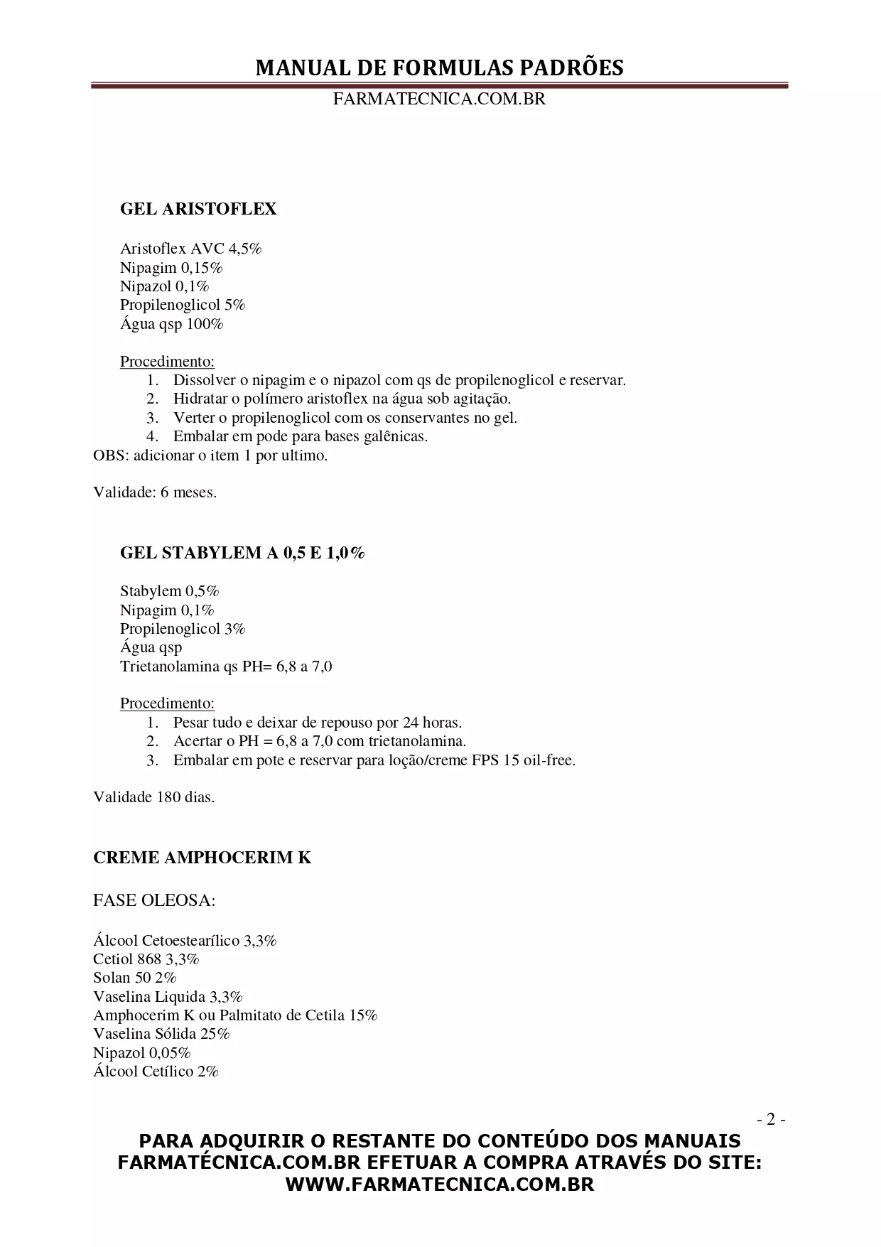 São mais de 370 fórmulas, procedimentos, pH's de estabilidade, incompatibilidades e muito mais.
